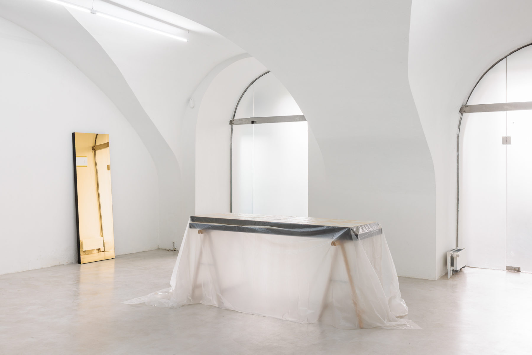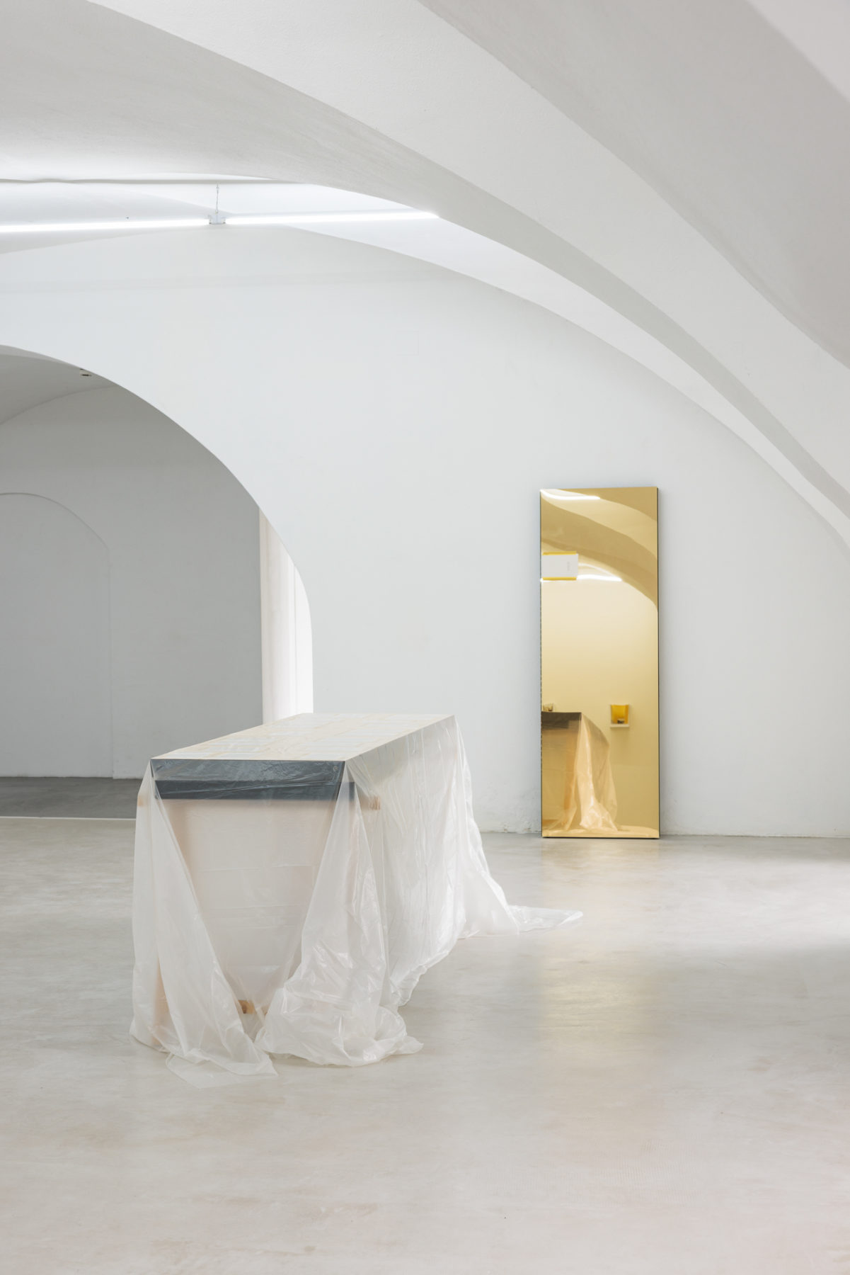 17Tom Burr, Screenplay (Gold), 2020/2025. Tom Burr, Paul, Grazer Kunstverein, 2025. Courtesy of the artist; Galerie Neu, Berlin; and Grazer Kunstverein. Photo: kunst-dokumentation.com
