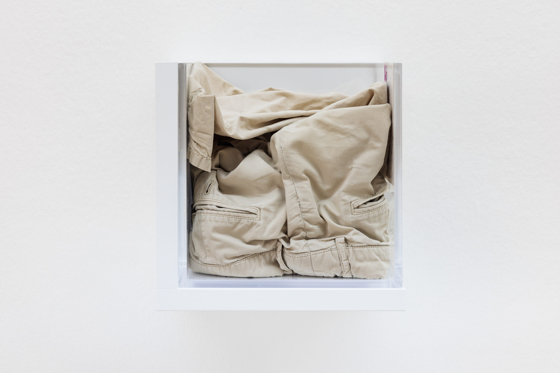 37Tom Burr, Grey Box One (Pair of Shoulder Pads), 2025. Tom Burr, Paul, Grazer Kunstverein, 2025. Courtesy of the artist; Galerie Neu, Berlin; and Grazer Kunstverein. Photo: kunst-dokumentation.com