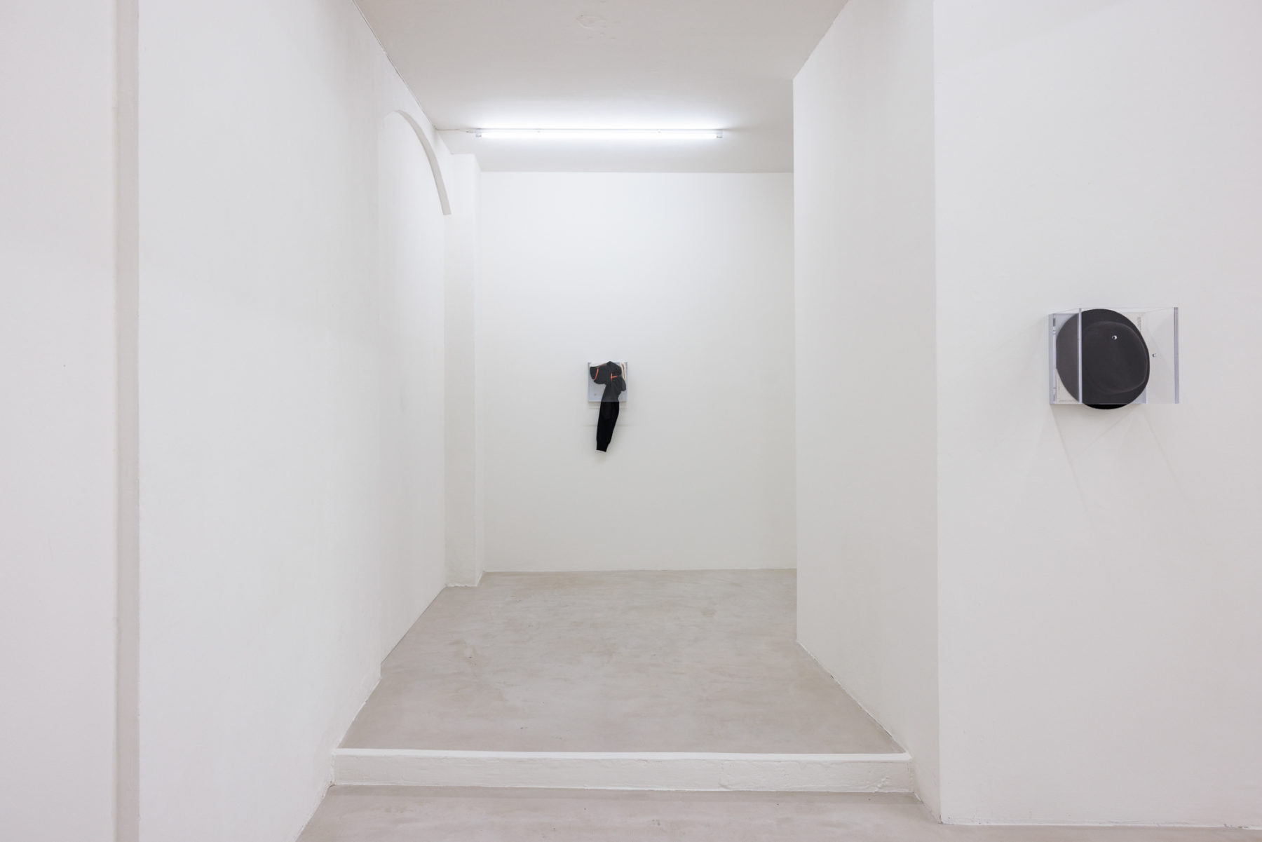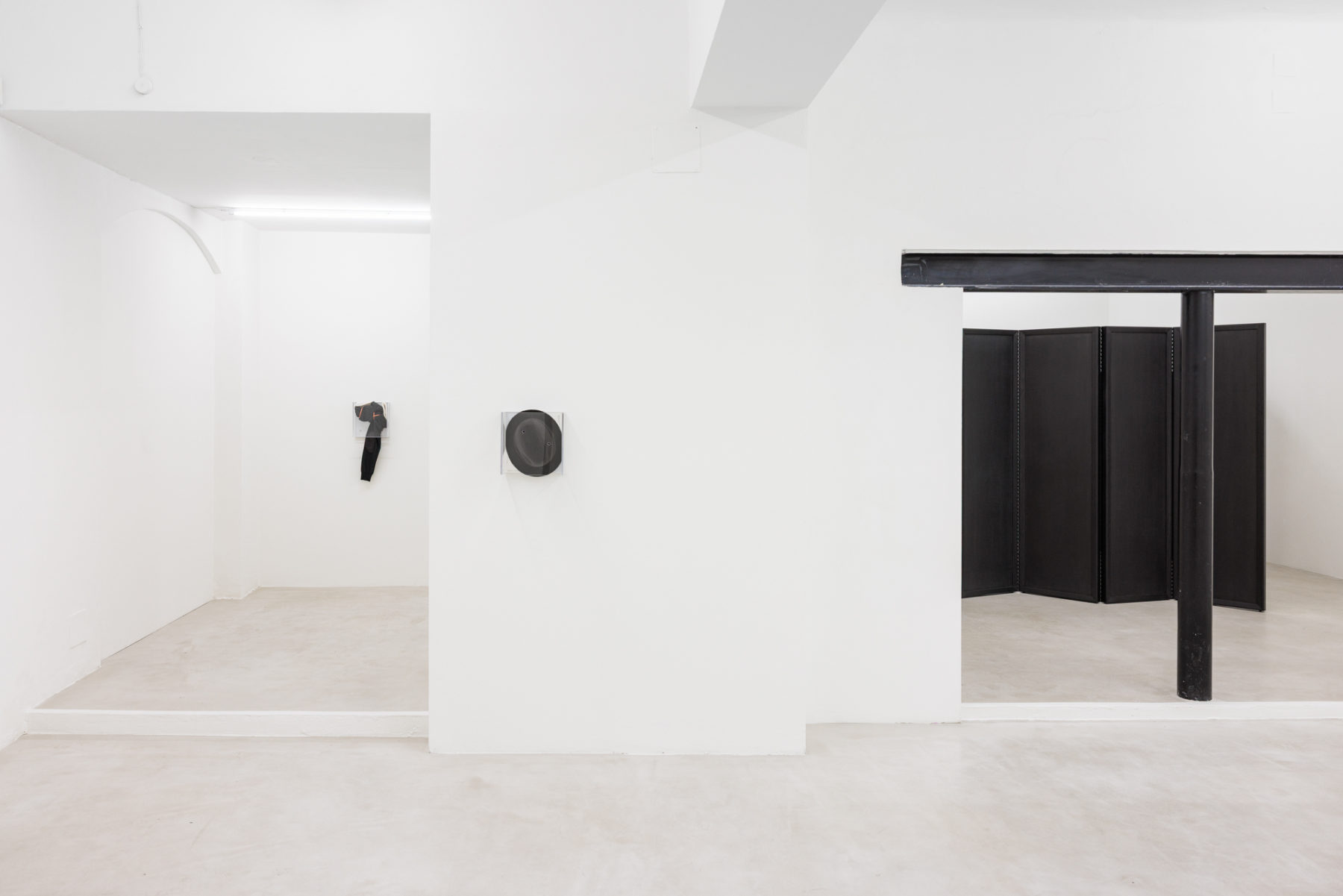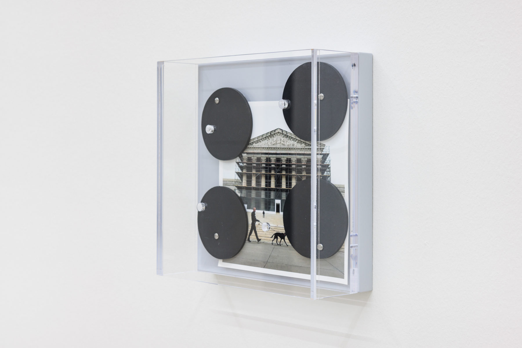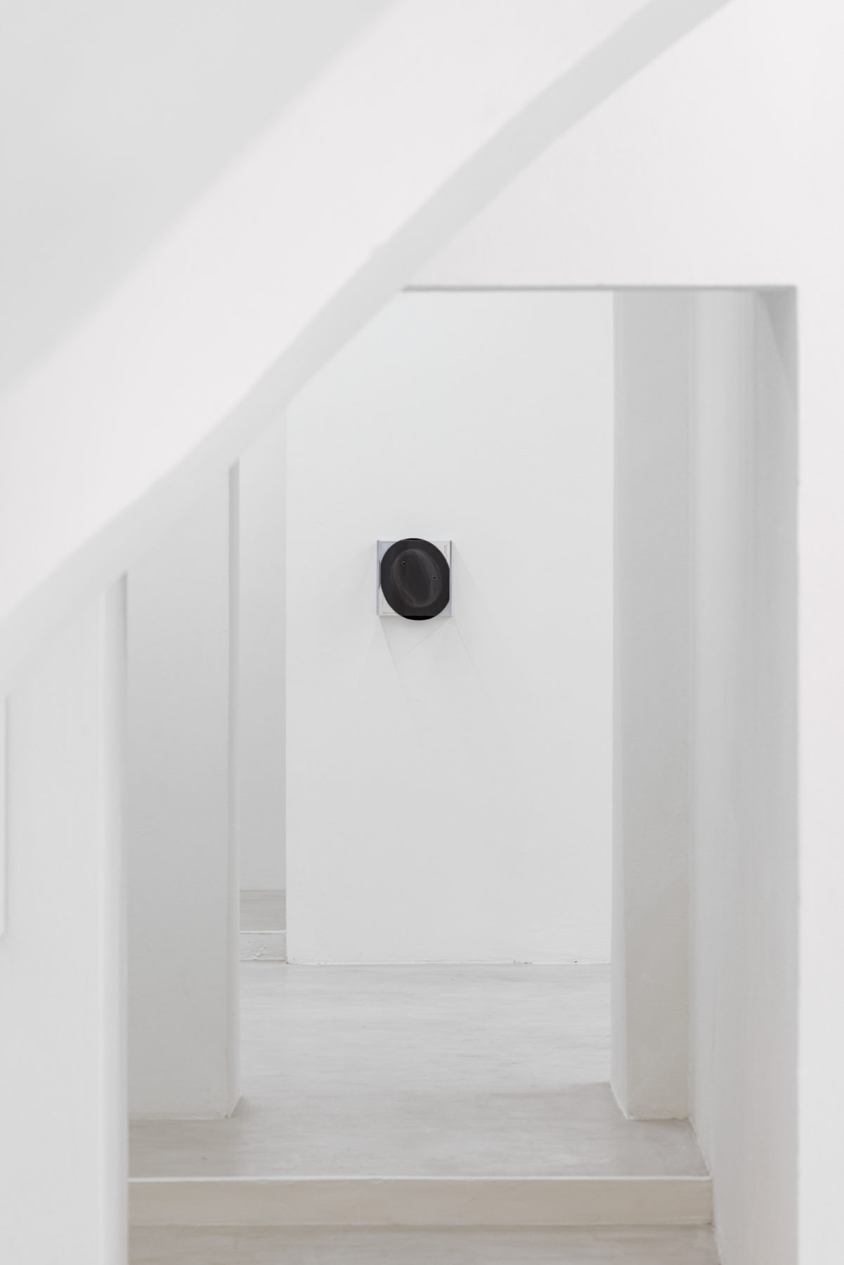 40Tom Burr, Grey Box Three (Four Black Rubber Coasters), 2025. Tom Burr, Paul, Grazer Kunstverein, 2025. Courtesy of the artist; Galerie Neu, Berlin; and Grazer Kunstverein. Photo: kunst-dokumentation.com