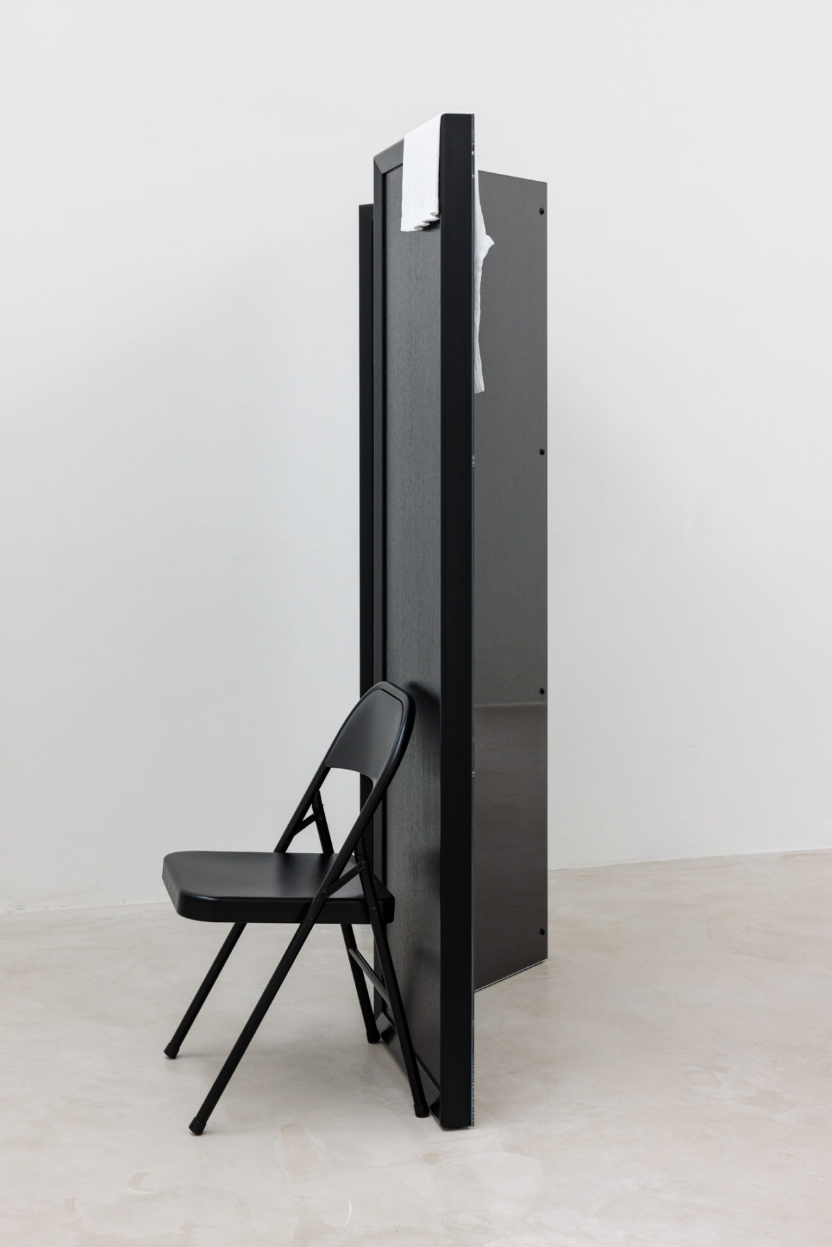 44Tom Burr, Screenplay (Anthracite/Austria), 2020/2025. Tom Burr, Paul, Grazer Kunstverein, 2025. Courtesy of the artist; Galerie Neu, Berlin; and Grazer Kunstverein. Photo: kunst-dokumentation.com