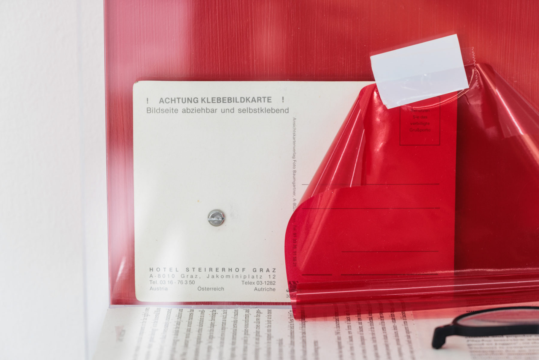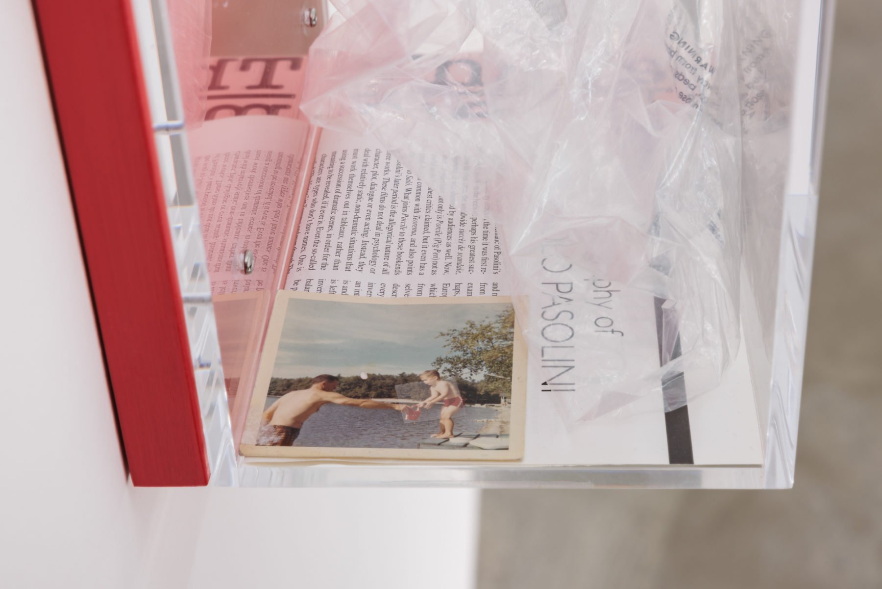 11Tom Burr, Red Box Three (Me), detail, 2025. Tom Burr, Paul, Grazer Kunstverein, 2025. Courtesy of the artist; Galerie Neu, Berlin; and Grazer Kunstverein. Photo: kunst-dokumentation.com